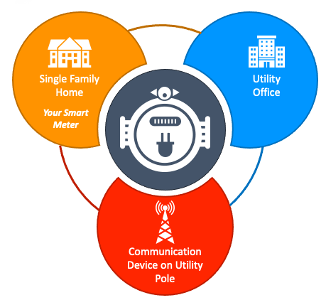 Smart meters communicate readings to utilities for processing, analysis, and communication back to customers for billing.